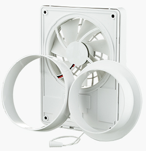 В силу конструктивных особенностей все остальные обычные вытяжные осевые настенно-потолочные вентиляторы имеют выходной патрубок длиной как минимум от 55 мм, что, в свою очередь, требует наличия монтажного пространства между плоскостью монтажа (например стеной) и вентиляционной шахтой.