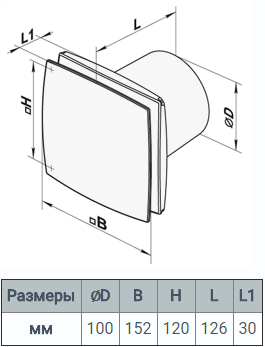 Предназначен для монтажа в вентиляционные шахты или соединения с воздуховодами Ø100 мм.