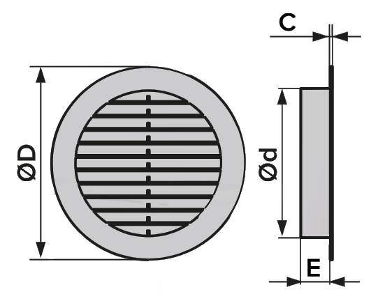 Решётка круглая металлическая вентиляционная вытяжная изготовлена из алюминия. Применяется для декоративного оформления входных и выходных отверстий каналов бытовой вентиляции. При длительном использовании на улице не теряет своих первоначальных свойств, сохраняет цвет. Обладает значительной ударопрочностью.
